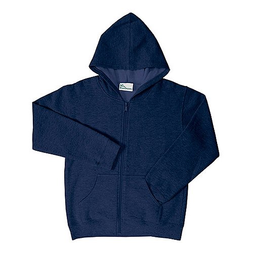 This is a great coat for your little girls school wardrobe by Classroom Uniforms. This zip front Cotton/poly fleece hoodie has elastic cuffs, attached hood, 2 patch pockets..