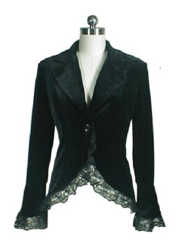 Gothic Victorian Vampire Black Velvet Lace Trim Jacket XL Size 14 Review