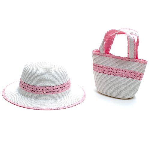 A great matching purse and hat set for your little girl by Sophias Style. This matching straw purse and hat have a matching pink woven band and trim. The purse has a Velcro closer and a silk lining. A great addition for an Easter outfit or an everyday look. Purse measures approximately 8" long x 5.5" tall.